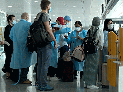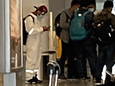 搭乗前に除菌剤での手の消毒を指示されました。