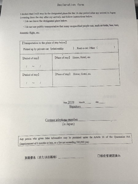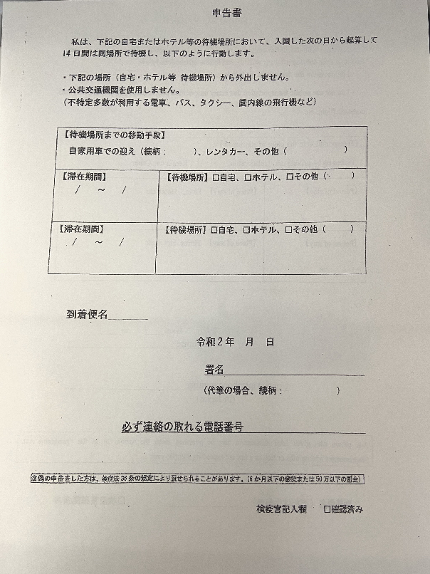 ・ここで、即自宅へ帰るか(誰が何時に迎えに来るか)、検査結果を待つか、(ホテルの選択もあるのかもしれません)申告します。