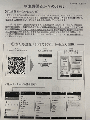 ** 追伸:保健所から連絡が2日目にも来なかったため念のためLINEで登録してみました。
