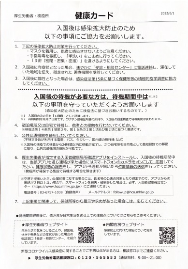 検疫から以下の書類を渡されました。